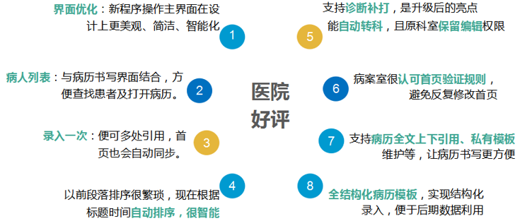 此次病历系统升级,一体化书写、病人列表、诊断补打、上下文引用等实用的操作功能,解决了旧系统多而杂等问题,避免了病历的重复录入、减少了医生修订工作量,极大地提升了医护们的病历查询、书写等工作效率,深受医院好评。