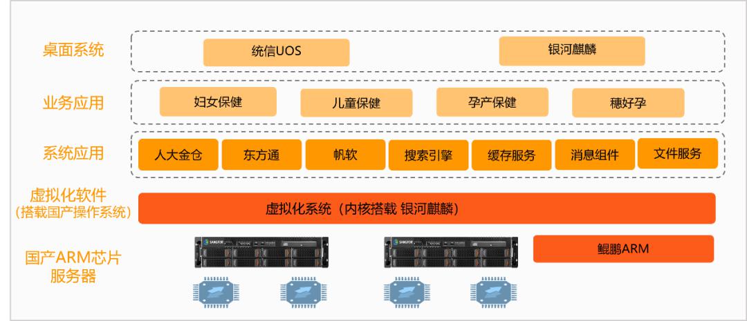 广州市妇幼保健系统在操作系统上完成了与银河麒麟高级服务器操作系统V10适配,搭载鲲鹏处理器,云端赋能,操作简易便捷,为妇幼保健信息系统提供了高性能、安全可靠的运行及实施环境。
